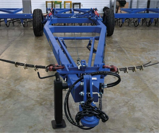 Несущий брус изготовлен из профильной трубы 150х150х8 мм. Брус сницы из трубы 150х100х8 мм, грядели 80х60х5 мм. Выдерживает нагрузки, длительный срок службы. Благодаря высокому расположению брусьев, борона не забивается растительными остатками.