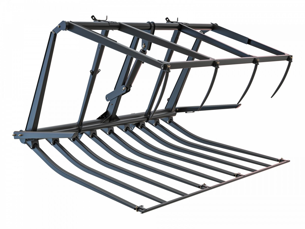 Грабельная решётка ПКУ-0,8-4 предназначена для использования с фронтальными погрузчиками серий ПКУ-0,8 и КУН-10 и применяется для скирдования растительной массы — соломы, сена, ботвы и других лёгких материалов. Рабочий орган позволяет аккуратно собирать и укладывать массу в скирды, обеспечивая её равномерное распределение и формирование плотной укладки. Решётка представляет собой прочную рамную конструкцию с жёстко закреплёнными зубьями, которые обеспечивают надёжный захват растительного материала без его повреждения. Особенно эффективна при работе на полях после уборки урожая, а также при заготовке кормов. Грабельная решётка ПКУ-0,8-4 — это простой и удобный инструмент, значительно повышающий производительность труда при скирдовании на базе погрузчиков серии ПКУ-0,8.