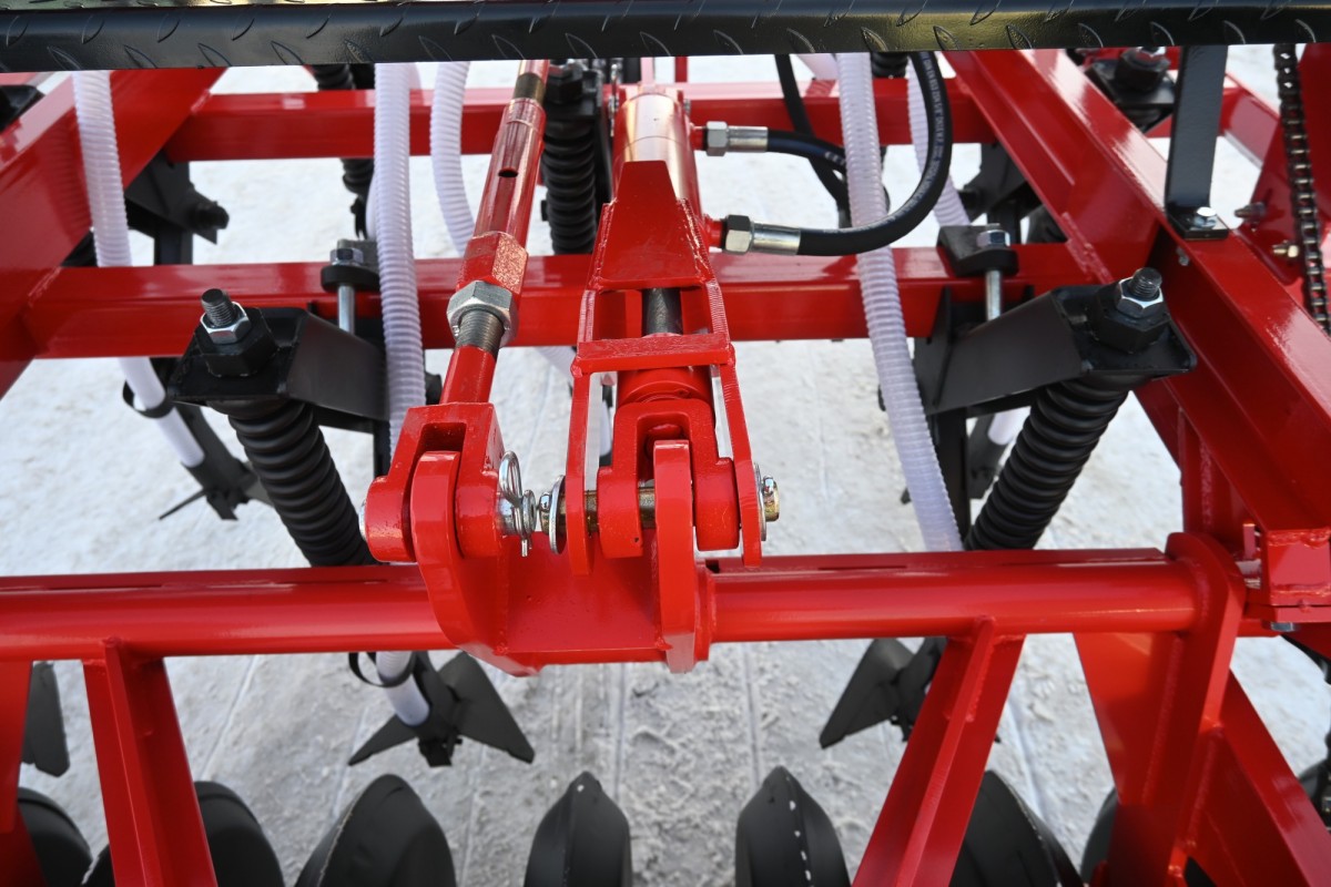 Усиленный шток и передняя крышка гидроцилиндра изготовлены с резьбой (у других производителей на стопорном кольце), что гарантирует длительный срок службы. Узел выдержит нагрузки в поле и все переводы из транспортного положения в рабочее. Усиленный РВД - выдерживает давление до 250 атмосфер.